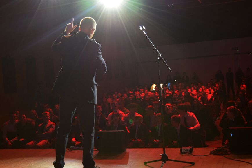 Lunchtime's big event was the Staff Talent Show which saw 5 teachers strutt their stuff in front of a live audience. First up was Mrs Thomas (Science) and her amazing voice with Whitney Houston's 'I Wanna Dance with Somebody', followed by Mr Beardsworth whose trumpet rendition of the Indiana Jones theme tune went down a storm! Miss Miller nearly brought the house down with Queen's 'Somebody to Love' and who knew that Mrs Ortega and Mr Ortega could cut such amazing moves on the latino dancefloor? Mr Robertson (Head of English) had to forego his acustic guitar performance due to technical issues but instead gave a powerful performance of memorised verse which was delivered with timing, energy and passion. And the staff talent show wouldn't be the same without Mr Kitson's 'Sweet Caroline' (so good, so good) which drew the 2022 talent show to an end.