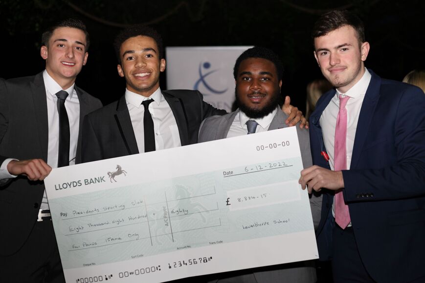 On the evening Tuesday 6th December, Mr Kitson and five representatives of the sixth form attended the Presidents Sporting Club Christmas Party to hand over a cheque for £8,884.00!