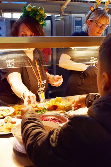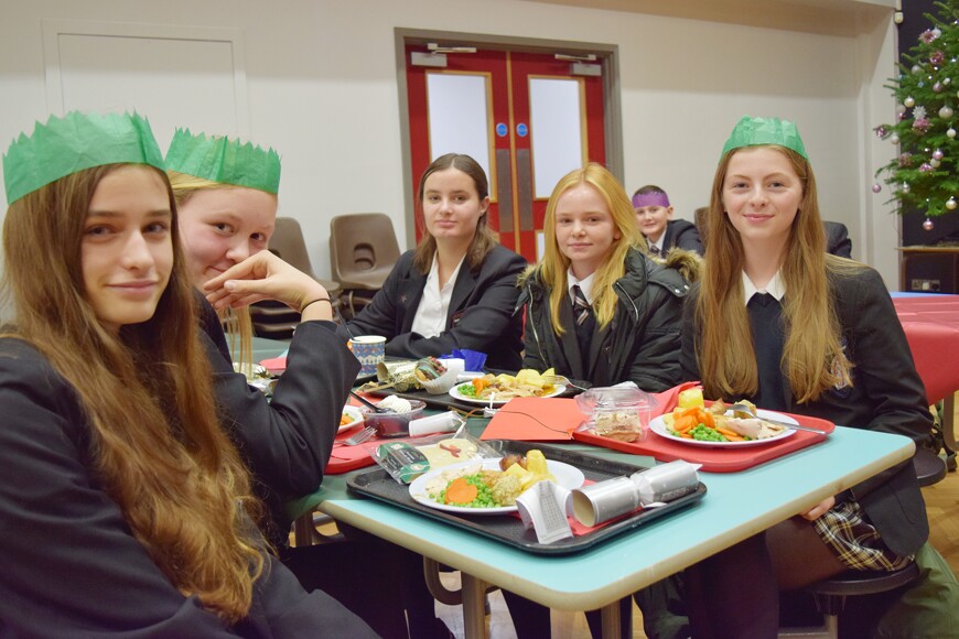 With yuletide music playing and crackers popping, students and staff alike queued up to receive their first Christmas dinner of the festive season!