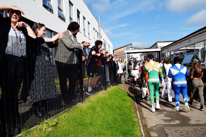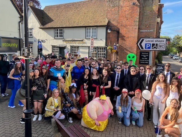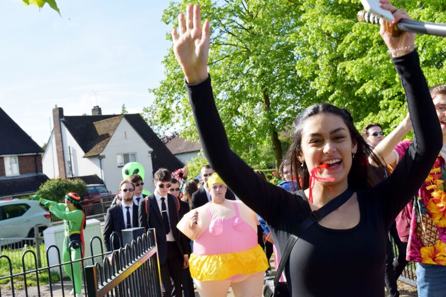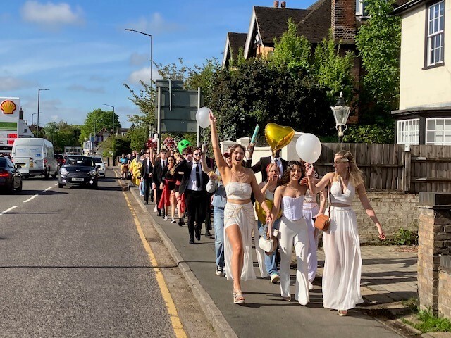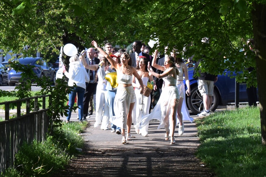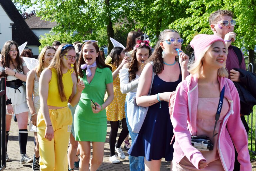 Leventhorpe's leavers' tradition of fancy dress was at its best with locals hooting horns and cheering our Sixth Formers as they made their way along the main road and into school for the last time before their exams.