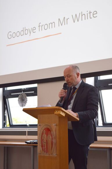 A morning of breakfast, speeches and awards took place in the Common Room with Hoodies and Yearbooks being distributed and signed before Mr White's final goodbye.