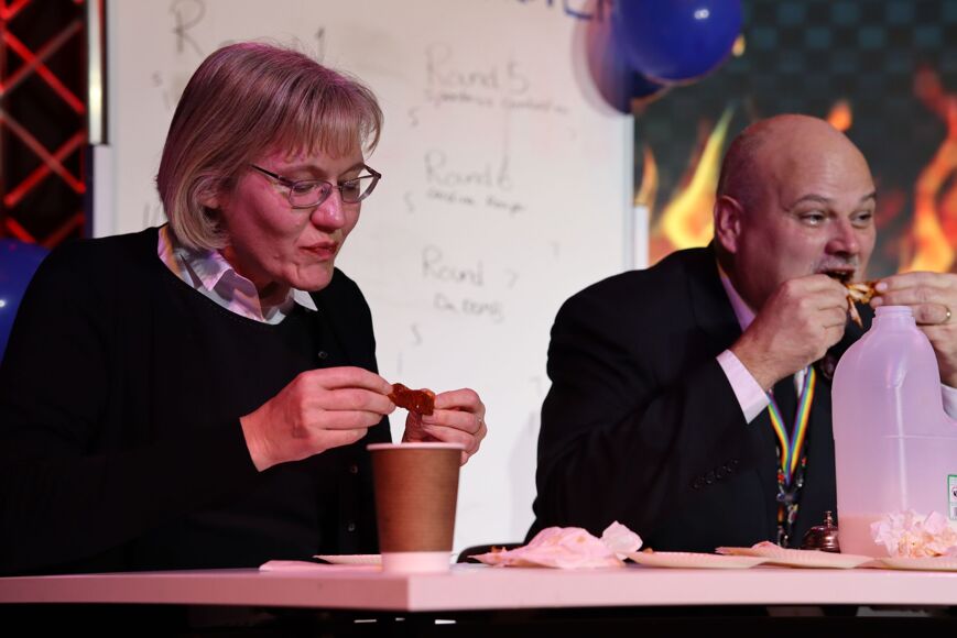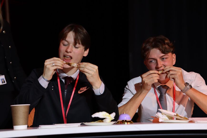 Hosted by our entertaining compares for the week, Lizzie Stables and Bobby Adams, the school hall was jam-packed with an audience on the edge of their seats and eager to see who would face that harshest of weapons: the spicy chicken wing!