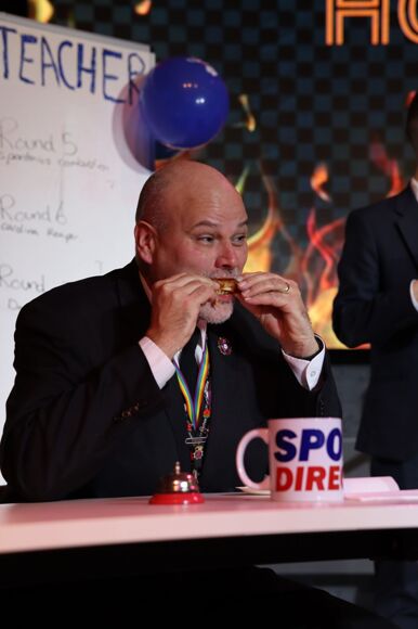 With each round of general knowledge, the losing side was forced to eat ever-increasingly spicy specimens and, to begin with it, looked as though the teachers were home and dry. However, a combination of Shea's brains and Mr Beardsworth's hunger meant that the final quick-fire round resulted in both teams facing 'Da Bomb' - our hottest-ever recipe!
