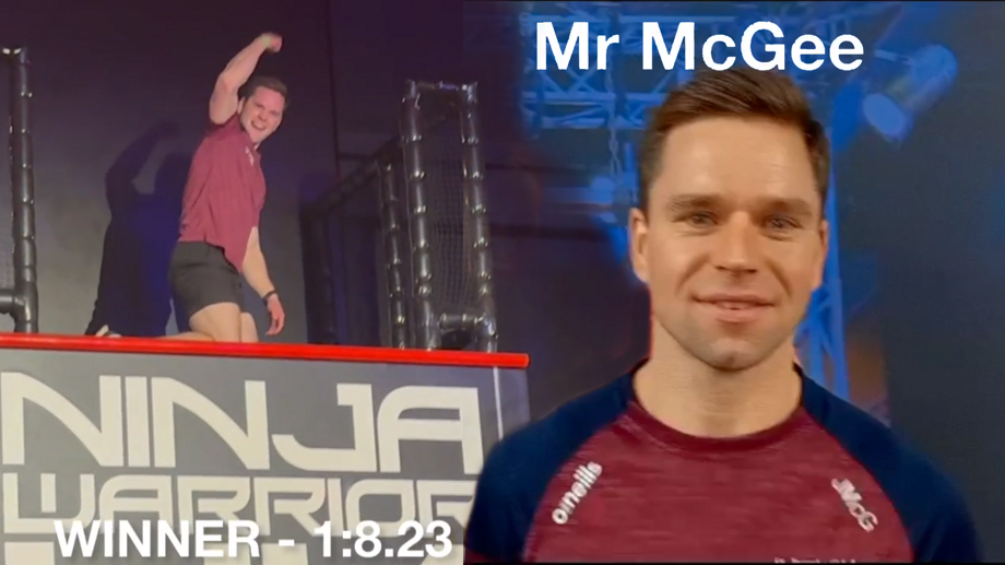 This morning's challenge for students was to guess which of our six staff contestants would win the gruelling Ninja Warrior Challenge 2023!