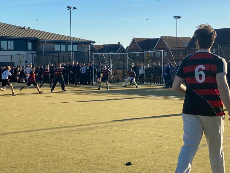 The sixth-formers had the edge from the start, their tight-knit teamwork and determination evident from their pre-match team talk however, the staff put up a good fight with no goals being scored for most of the first half.