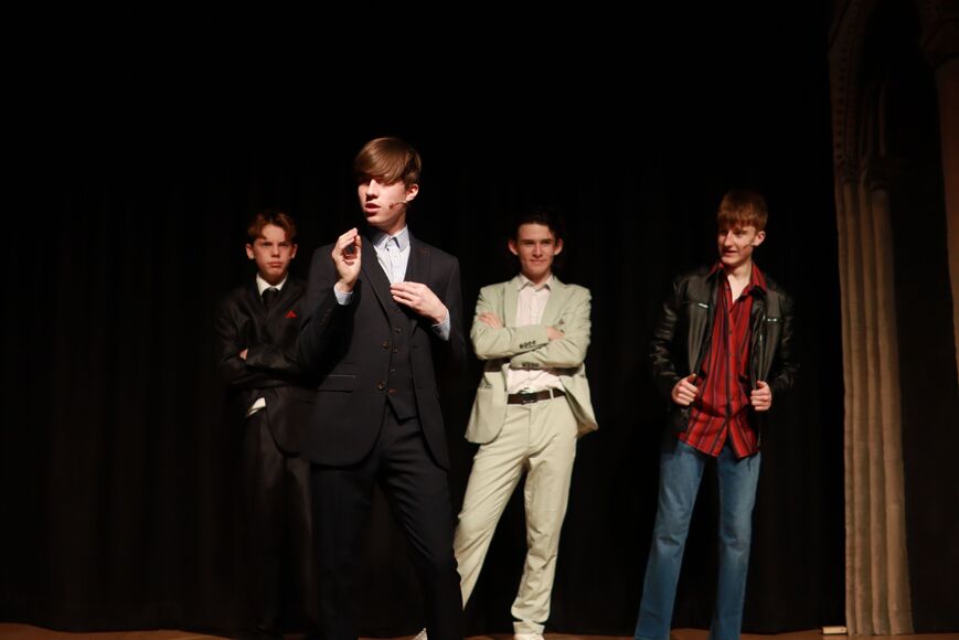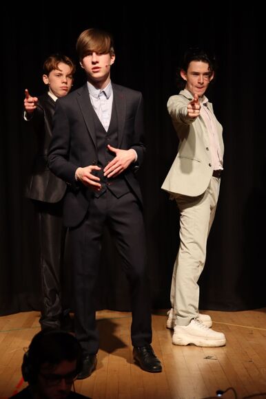 Sid Martin (Y10) clearly enjoyed playing 'bad guy' Curtis Jackson, Deloris' boyfriend and his sidekicks played by Guy Anthony (Y10), Aaron Bowden (Y11) and Arlo Booth (Y8) had the audience in stitches with their wooing efforts!