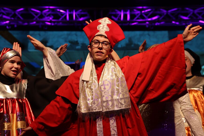The set and costumes looked incredible with highlights including moving backdrops and cathedral pillars! There must also be mention of the wonderful congregation of nuns and their carefully choreographed moves, directed by student dance captain, Dora Harcsa (Y10).