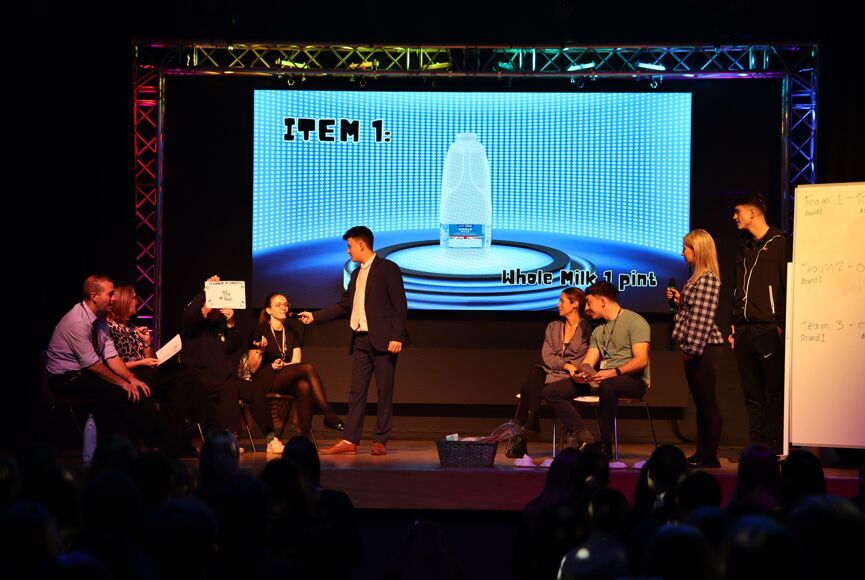 At lunchtime, The Price Is Right saw teachers competing to escape the inevitable pie-in-the-face by guessing the cost of everyday supermarket items (and in the event of a tie-breaker, that Rock, Paper, Scissors decider). There was a great deal of cheering, booing, count-downs, shouts of 'higher' and 'lower' and 'pie them, pie them' from the audience!