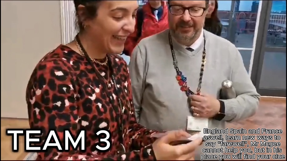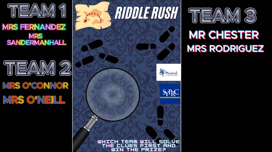 During form time, we watched the Riddle Run in which staff competed against eachother in a treasure-hunt-style race to the prize! It was a close run between teams 1 and 3 who reached the final destination simultaneously. A tussle broke out as, having spotted the prize from behind a barrier, Miss Rodriguez directed her team mate, Mr Chester, to the fridge door...however, Mr Chester had not bargained on a woman's need for chocolate and was subsequently shoulder-barged by the small-but-mighty Ms Fernandez who rose victorius with her box of Celebrations! ...We're not even sure she shared them with her team mate, Mrs Sandeman-Hall...?