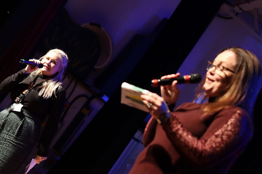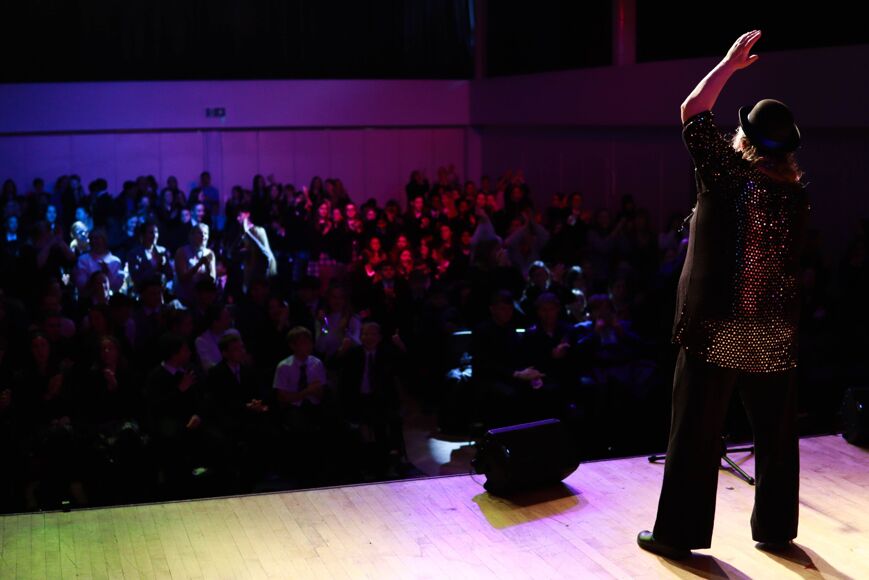 At lunchtime, the hall was packed with students, all eagerly awaiting the Staff Talent Show in which did NOT disappoint! Mr Bambury on the guitar, Mr Beardsworth on the trumpet, and powerful vocal duet from Miss Miller and Mrs Crosby and a solo by Mrs Thomas got the crowd on their feet and dancing! There was a surprise appearance from Dolly Kitson who perfomed 'Nine to Five' to whoops and wolf whistles. The show's finalé was a whole department act from MFL with their lanuages version of YMCA remastered as 'Love MFL'! There was even a spot of Irish dancing from Mr McGee to top it off!