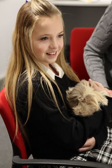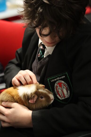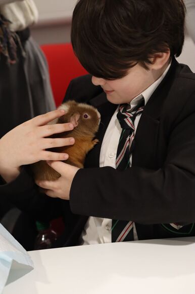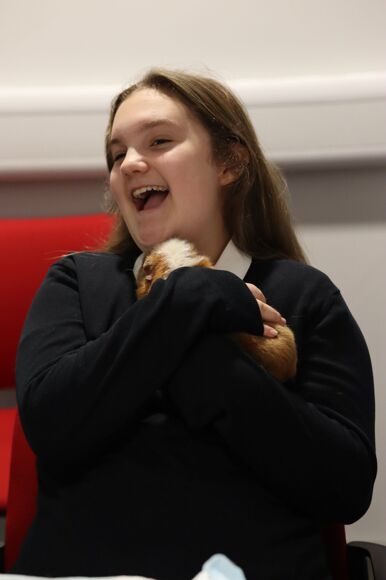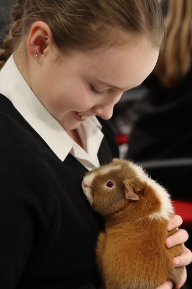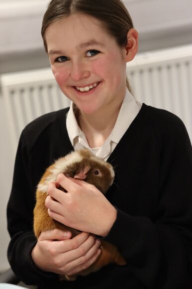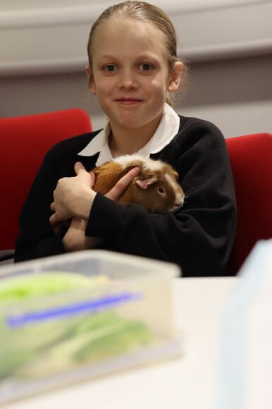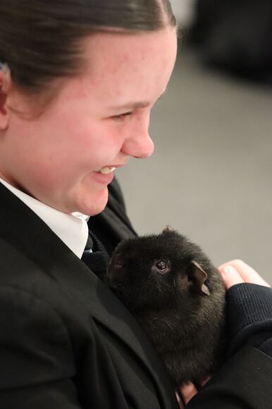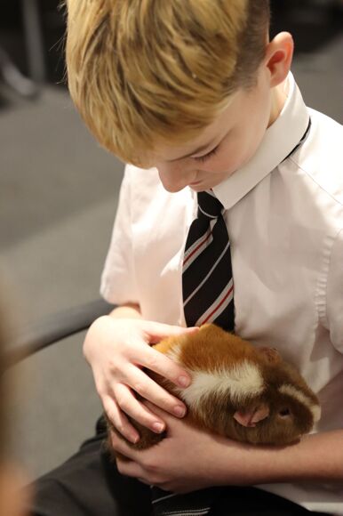 Also on Thursday a ‘Pet Therapy’ event was held for selected students in Years 7 and 8 who were invited to meet Captain, Nutmeg, Winnie and Pumpkin, four Guinea pigs for cuddles and strokes from Lara's Ark! Nutmeg is a long-haired Peruvian Guinea pig while Captain, the only boy of the herd is a werewolf Guinea pig with more coarse and wiry. Pumpkin, the baby, is a Teddy Guinea pig and Winnie is a hairless Skinny pig who felt amazingly warm to the touch! It was amazing to see the students' faces as they held the animals and the calming effect that the pets created. I think the photos say it all!