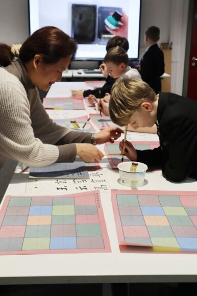 Dr Cheng led a Chinese calligraphy workshop at lunchtime using special paper and brushes (which were kindly donated to the school by the Taiwan Embassy), meanwhile Mrs Bayford offered students the opportunity to decorate delicious French crêpes to eat.