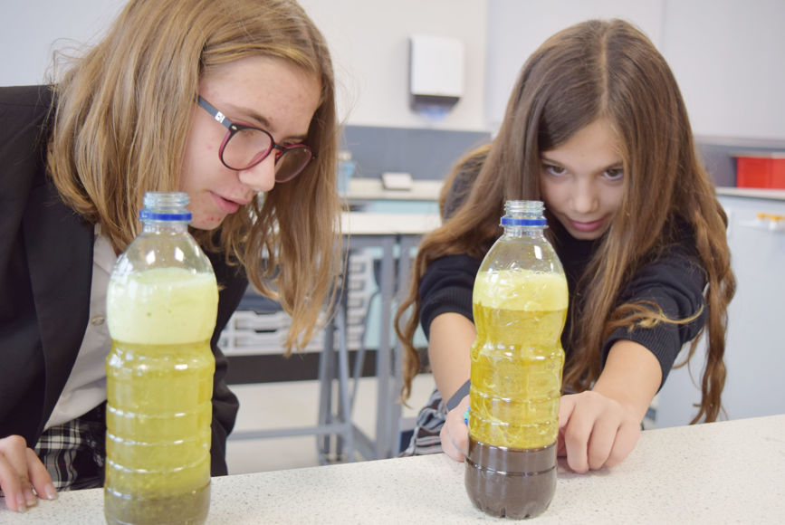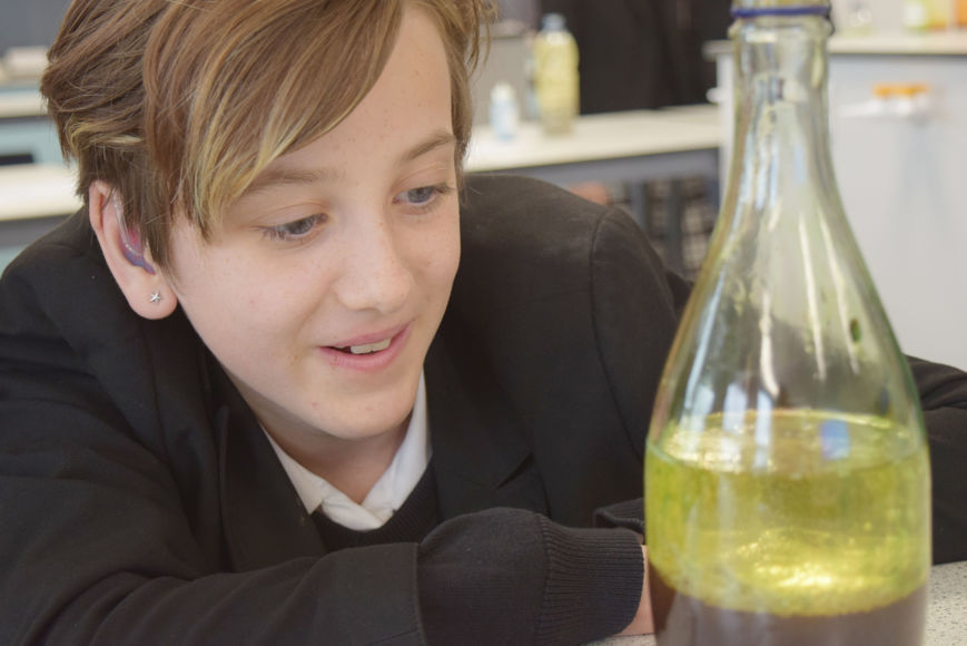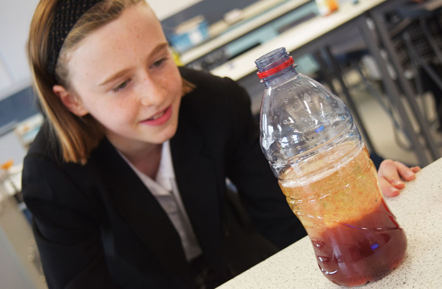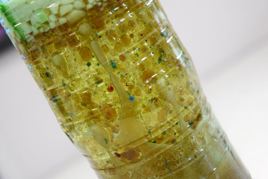 Yesterday, our budding scientists in Years 7 & 8 made lava lamps during Science Club at lunchtime. Mr. Cutts demonstrated how the oil stays above the coloured water because it is lighter/less dense. Students then added a dissolving tablet which released a gas which rises to the surface. As the gas rises, it brings with it some of the coloured water which then sinks back down to the bottom, making an effective lava lamp!