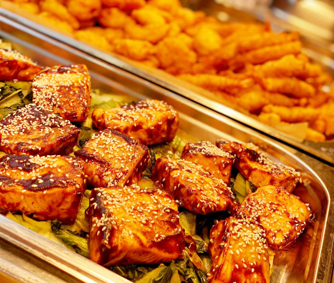 With a choice of Hoi Sin Salmon, Panko Breaded Prawns, Sweet & Sour Battered Chicken/Praw/Vegetable Bites and Chinese Chicken Skewers, not to mention the many sides of Prawn Crackers, Duck Spring Rolls, Seaweed, Special Fried Rice and Vegetable or Chicken Chow Mein, this really was a feast to remember in the Leventhorpe Dining Hall today!
