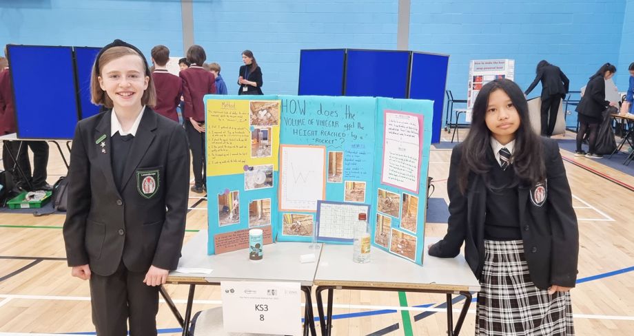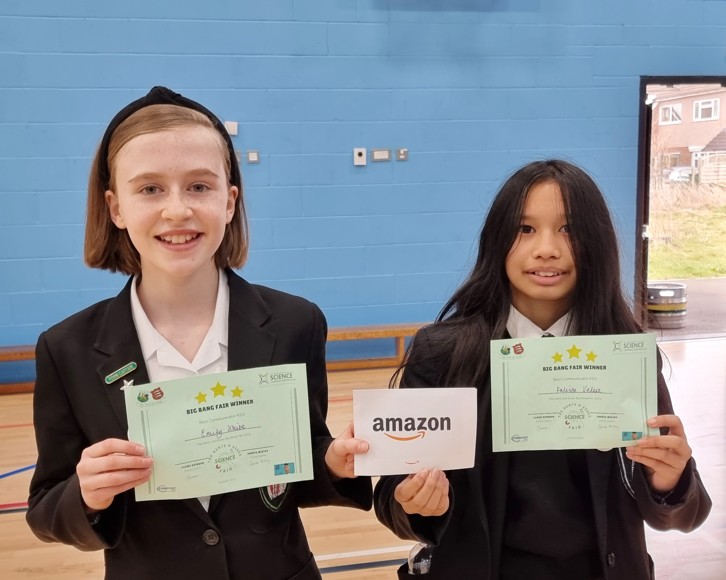 Emily White and Kalista Veluz won "Best Communication" for their project on the effect of the volume vinegar in a rocket and were awarded a £30 Amazon Voucher
